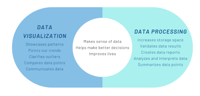 Data visualization is one of the steps of the data science process, which states that after data has been collected, processed and modeled, it must be visualized for conclusions to be made. Data visualization is also an element of the broader data presentation architecture discipline, which aims to identify, locate, manipulate, format and deliver data in the most efficient way possible.